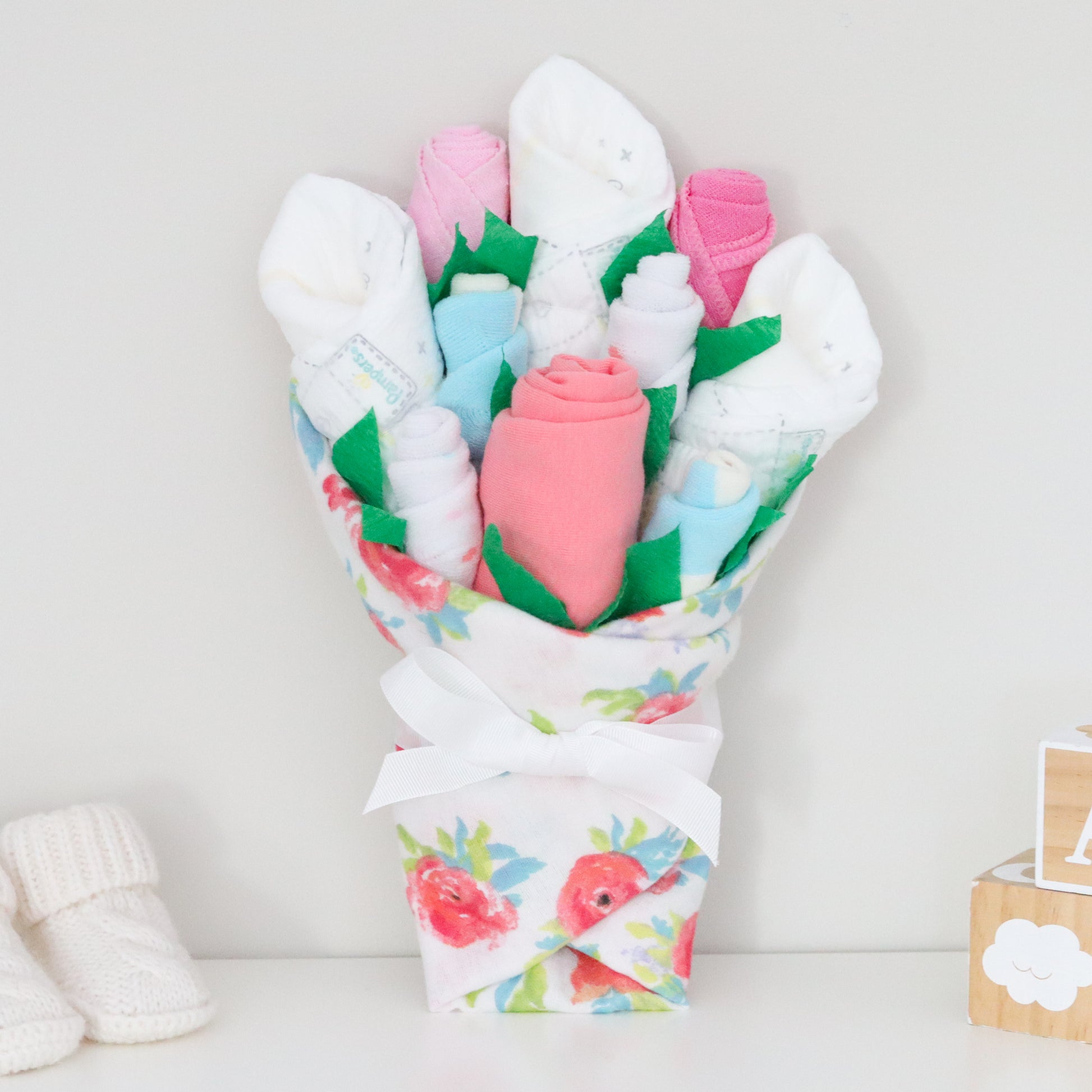 Look no further for the perfect way to say "congratulations" to a friend that just welcomed a baby girl! She will be thrilled to receive flowers that she can actually use for her new little girl.